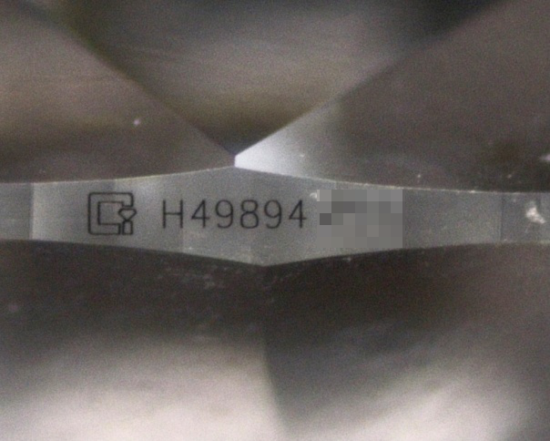 近日珠宝国检(NGTC)北京实验室接到一件物流散样客户送检“钻石”戒指,经综合鉴定为实验室培育钻石。样品的“特殊”之处在于这颗钻石腰围刻字既仿冒了珠宝国检(NGTC)上海实验室刻字(图1)又仿冒了GIA刻字(图2);图3为珠宝国检(NGTC)上海实验室原刻字与仿冒刻字对比。编号H4989*的样品为天然钻石,净度级别为VVS2,颜色级别为E,重量为1.10ct。