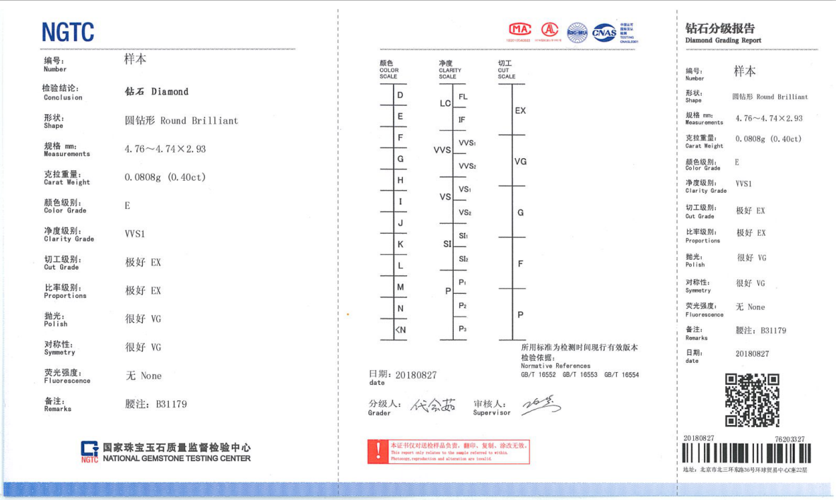 根据NGTC已制定的和即将在未来陆续发布宣贯的系列珠宝玉石国家标准,NGTC官网、中国珠宝行业网将持续为大家更新报道,NGTC检测业务推出的珠宝玉石分级业务和相应的分级证书,备受关注的“红宝石分级”、“蓝宝石分级”、“祖母绿分级”等珠宝玉石的分级证书都将运用这个版本: